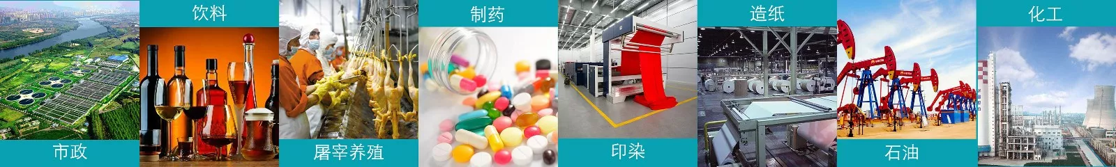 能廣泛應用于市政污水、食品、飲料、屠宰養殖、印染、石油化工、造紙、皮革、制藥等各行業的污泥脫水。